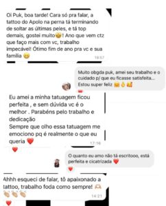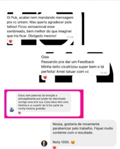 A verdadeira medida do meu trabalho está na emoção de quem carrega minha arte na pele.