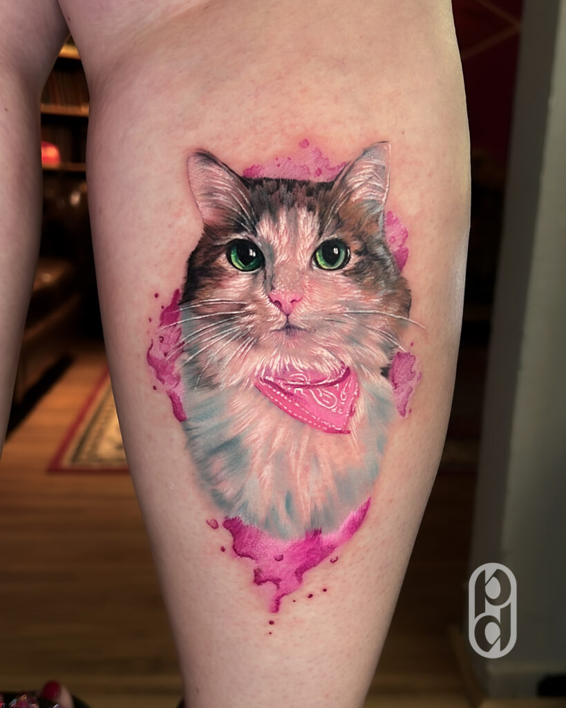 Utilizando agulhas finas e pressão controlada, o fineline permite criar traços delicados com alta definição, preservando a leveza do desenho sem perder a identidade do pet retratado.